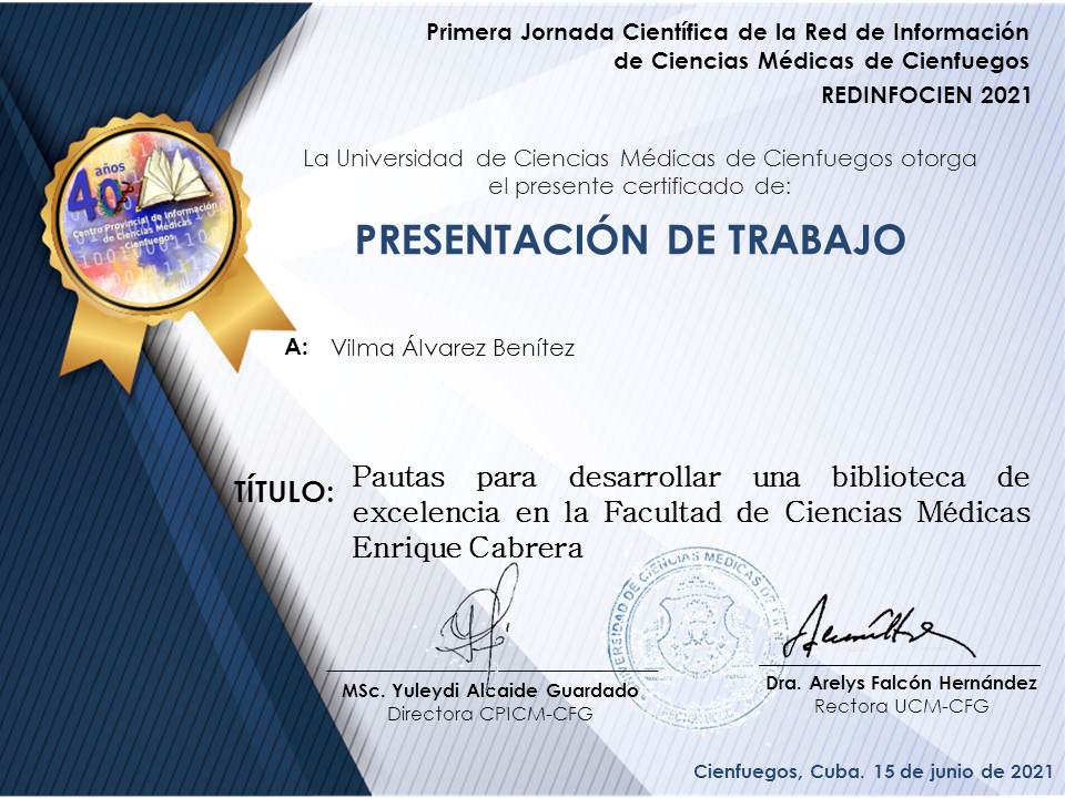 Jornada Científica de la Red de Información de Ciencias Médicas de Cienfuegos (REDINFOCIEN 2021).